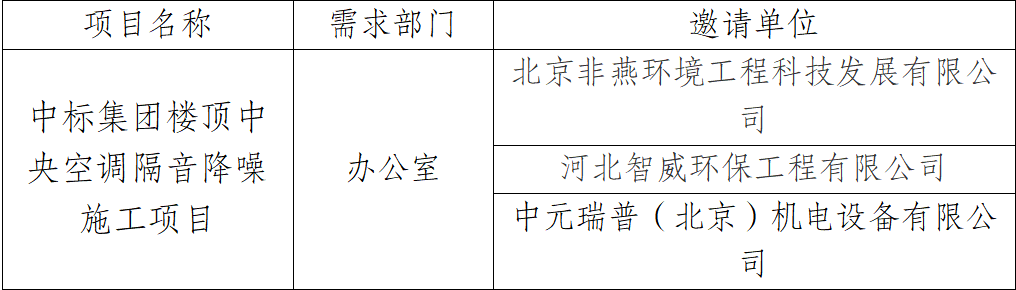 按照《完美官方端入口采购工作管理办法(试行)》要求,现对中标集团楼顶中央空调隔音降噪施工项目竞争性谈判邀请单位公示。